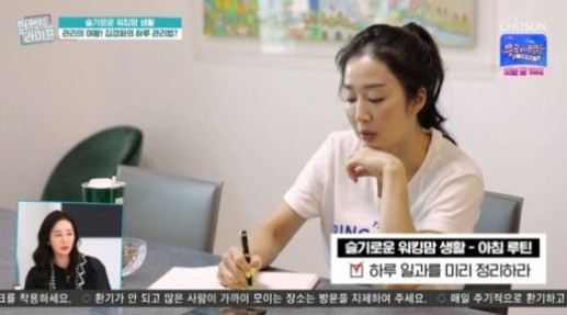 방송에서는 똑소리 나는 자녀 교육뿐 아니라, 일과 자기관리까지 완벽하게 소화하는 김경화의 ‘만점 일상’이 공개되었다.