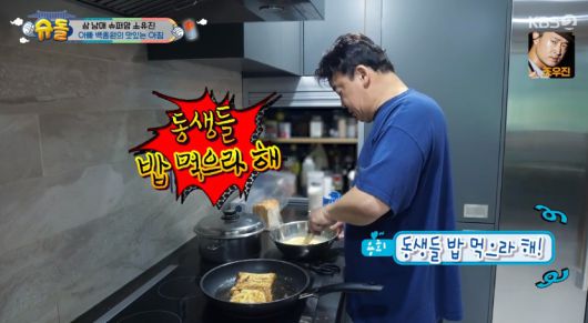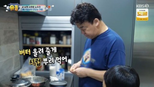 백종원은 이른 아침부터 아이들의 식사를 챙기는 모습을 보였는데 아이들의 요청에 따라 프렌치토스트를 만들었다.