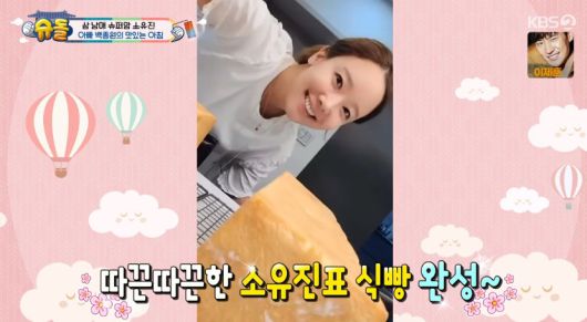 소유진은 “아침에 남편이 해준 토스트를 먹는 기분이 어떤가?”라는 질문에 “그냥 프렌치토스트다. 그래도 해주니 좋다”며 수줍게 웃었다.