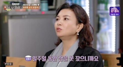 허영만은 "옛날에 활동했던 사람들 다 '책받침 요정' 아니에요?"라고 물었고 김혜선은 쿨하게 인정하며 "채시라, 이상아와 같이 활동했었다. 일주일 동안 잠을 못 잤다"라고 답했다.