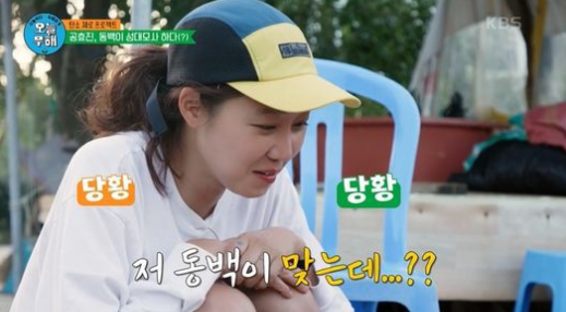 이때 제작진은 부녀회장에게 “동백이”라고 공효진을 설명했지만 부녀회장은 “아닌 거 같다. 하나도 안 닮았다”고 시큰둥한 반응이었다. 당황스러워하던 공효진은 급기야 “용식씨”라고 ‘동백꽃 필 무렵’ 대사를 선보였다. 그럼에도 부녀회장은 “얼굴 뜯어고쳤나. 하나도 안 닮았다”고 말했다.