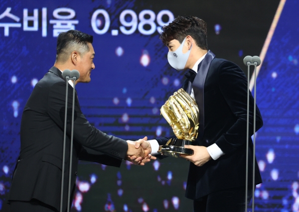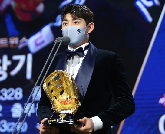 시상자는 아버지인 이종범 LG 트윈스 코치가 직접 황금 장갑을 안겼고 이정후는 "집에 계신 어머니, 감사하고 사랑한다"고 소감을 말했다.