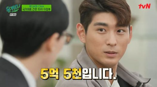 '유퀴즈'에서 유재석은 "KBO 5년차 중 최고 연봉이라고 한다. 연봉을 여쭤봐도 되냐"고 물었고, 이정후는 바로 "5억5000만원"이라고 답했다.