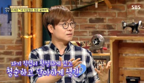 이세준은 “어렸을때부터 머릿속에 꿈꿔오던 이상형은 자기 직업이 확실하게 있고 청순하고 단아하게 생긴 글래머스타일이다”고 말했다.