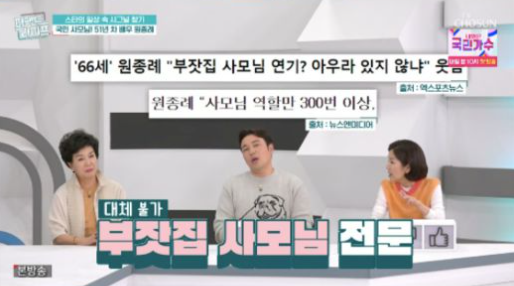 방송에서는 배우 원종례가 출연해 살고 있는 집을 공개했다. 아침부터 남편과 달달한 일상을 선보이며 시선을 모았다.