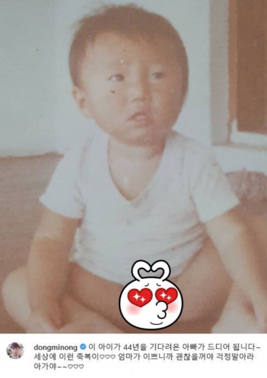 그는 “이 아이가 44년을 기다려온 아빠가 드디어 된다”며 “세상에 이런 축복이. 엄마가 예쁘니까 괜찮을 거야 걱정 말아라 아가야”라는 글과 함께 한 장의 사진을 게재했다. 공개된 사진 속에는 장동민의 어린 시절 사진이 담겼다.