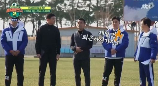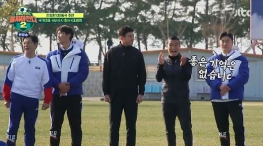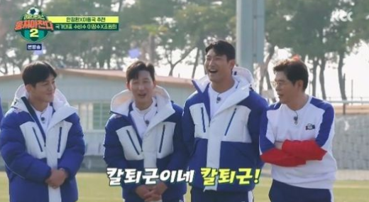 특히 이동국, 안정환 감독 팀으로 나뉘어 진행된 물 따귀 배 풋살 대결에서 이정수는 다리에 힘이 풀리는 모습을 보여줘 웃음을 자아냈다.