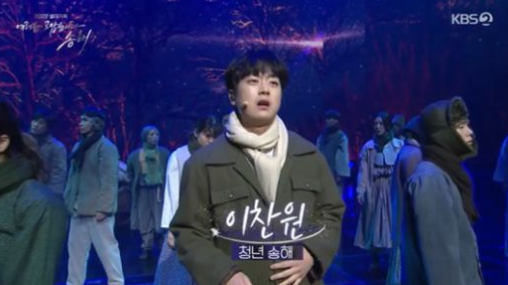 이 무렵의 송해는 이찬원이, 어머니는 박애리가 맡아 서로를 애타게 부르며 안타까움을 전했다. 관객석에 앉아있던 송해는 주먹을 꼭 쥐고 입을 꾹 다문 채 먹먹한 표정으로 무대를 바라봤다.