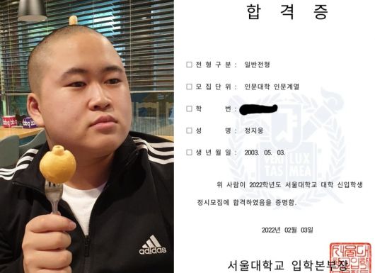 정지웅은 “기다리던 서울대 발표가 이제야 나왔다. 1년 동안 수능 공부를 하면서 참 힘들었다. 모의고사 성적은 제자리 같아서 후회도 하고 수시(모집)를 버리면 안 됐던 건가 하는 생각도 자주 들었다”고 회상했다.