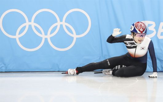 최민정은 한국 선수 최초의 500m 금메달에 도전했지만 준준결승에서 미끄러지는 실수를 범하며 무관의 한을 풀지 못했다.