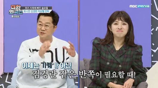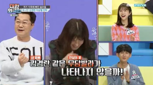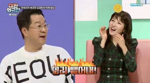 김경란은 "다정하고 따뜻하고 든든한 사람이 좋다"며 "최근에 무속인분들 프로에 나갔는데 그분들 이야기에 따르면 제가 외국분을 만나면 좋다고 했다. 그리고 아마 연하일 거다라고 하더라"고 했다. 그러자 지상렬은 "오리 뱉어내"라고 분노해 주위를 폭소케 했다.