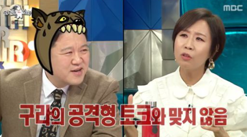 유세윤은 "정선희 씨가 오늘 '라스' 첫 출연인데 낯설지 않겠다"며 물었다. 이에 정선희는 "낯설다. 일단은 제가 진행했던 '황금어장'때와는 많이 다르고 '라스' 자체가 저랑 결이 안 맞는다. 김구라 씨의 공격형 토크가 저와 맞지 않는다"고 밝혔다.