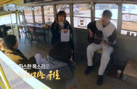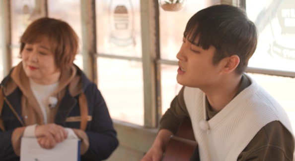 커다란 나무 아래 정차해 있는 노란 버스에 가수 박재정이 기다리고 있었고 반가운 인사가 오가고 노래로 이야기하듯 진심을 담은 자작곡으로 이 여행에 함께 하고 싶었던 마음을 고백했다.