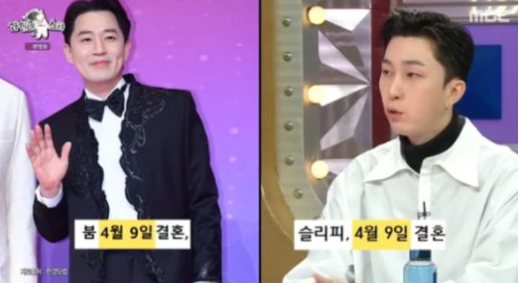 슬리피는 방송에서 방송인 붐과 결혼 날짜가 같다고 밝혔다.