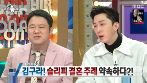슬리피는 김구라가 주례를 약속했는데 며칠 뒤에 주례는 아닌 것 같다고 하더라"고 폭로했다. 이를 들은 김구라는 "내 나이에는 주례는 좀 그래서 덕담을 해주겠다고 했다"고 해명했다.