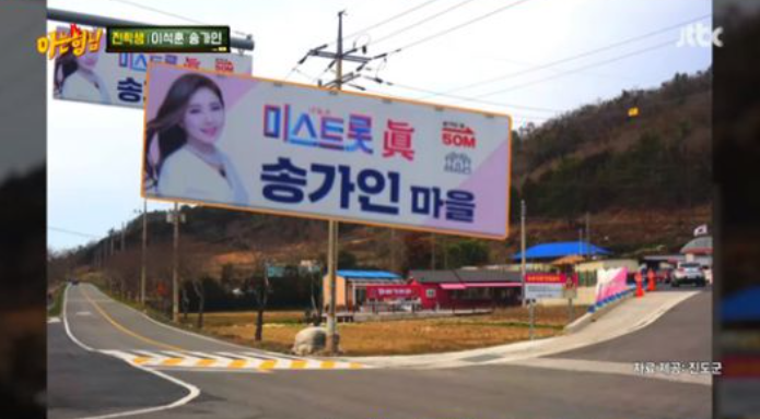 이어 "내비게이션에 '송가인 마을'이라고 치면 마을이 나온다. 거기 가는 길에 송가인 공원, 송가인 길이 있다"고 자랑했다.