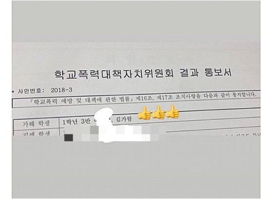대륜은 "김가람은 2018년 6월 4일 열린 학교폭력대책자치위원회에서 학교폭력예방 및 대책에 관한 법률 제17조 제1항 제5호에 따라 특별교육 이수 6시간, 동조 제9항에 따라 학부모 특별교육 이수 5시간 처분받았고, 학교폭력의 피해자 A씨는 동법 제16조 제1항 제1호에 따라 심리상담 및 조언 등의 보호조치를 받았다"고 주장했다. 이와 관련해 전문가들은 5호 처분은 상대적으로 무거운 처분이라고 지적했다.