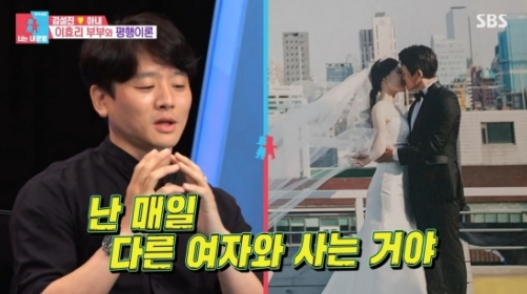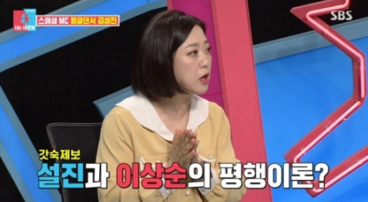 김설진은 이어 "이상순과 이야기를 하다가 아내 뒷담화를 했는데 사실 저희 아내가 변덕이 좀 심한 편"이라며 "매번 달라져서 힘들다 보니 내가 어떻게 하면 좀 편해질까 하다가 그냥 매일 다른 여자와 사는거다 생각하기로 했다"고 전했다.