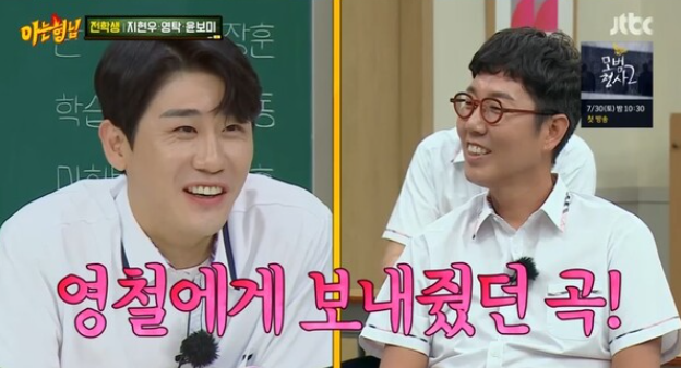 이를 들은 김희철은 "내가 영철이한테 들은 얘기랑 다르다. '영탁이가 내 노래 뺏어갔다'고 했다"며 농담해 웃음을 자아냈다.