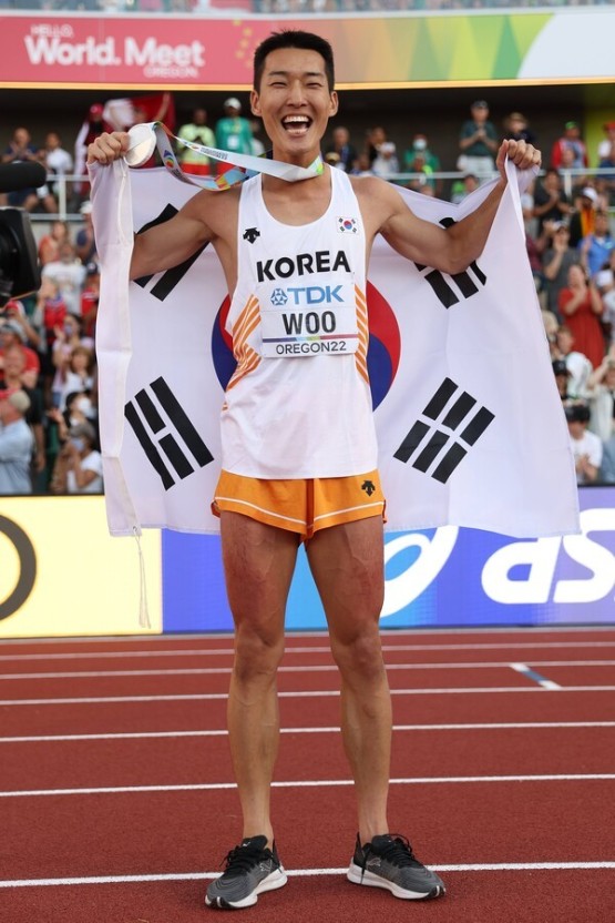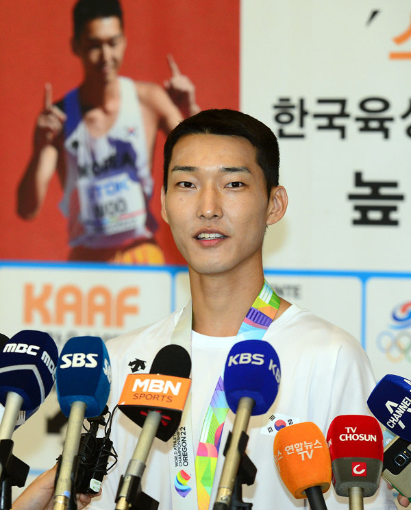 우상혁은 지난 19일 미국 오리건주 유진에서 열린 세계육상선수권대회 남자 높이뛰기에서 2m35를 넘으며 은메달을 따냈다. 이는 한국 육상의 세계선수권 역대 최고 성적이다.