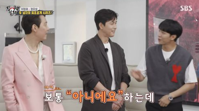 방송에서 정우성은 자신이 이정재보다 예능감이 좋다고 인정했다.