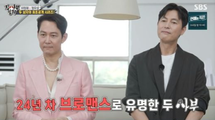 제작진은 이정재와 정우성에게 "두 분은 24년차 브로맨스로 유명하다"며 "청담부부로 통하고 계시는데 연예계에서 가장 의혹이 많은 친구 사이기도 하다"고 말했다.