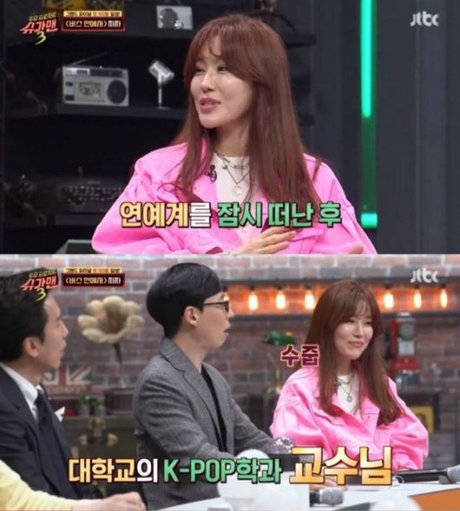 유영은 "자자 이후에 이쪽 업계에서 일하고 싶지 않아 연예계를 잠시 떠났었다. 지금은 국제대학교 K-POP 학과에서 공연 제작 수업을 하고 있다"며 교수로 생활하고 있다고 전했다.