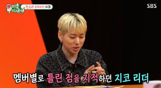 지코는 “멤버들끼리 다툼이 있었나?”라는 질문에 “신인 때 리허설이 끝나기만 하면 싸웠다. 매니저가 찍은 영상을 보면서 한 명 한 명 씩 지적을 하니 그 친구들도 기분이 썩 안 좋은 거다. 아는 얘기를 계속 하니까”라고 답했다.