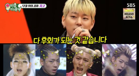 “후회되는 스타일이 있나?”라는 질문에는 “다 후회가 된다”고 한탄했다. 이에 모벤져스는 “괜찮다. 그 누구도 할 수 없는 스타일 아닌가”라며 지코를 격려했다.