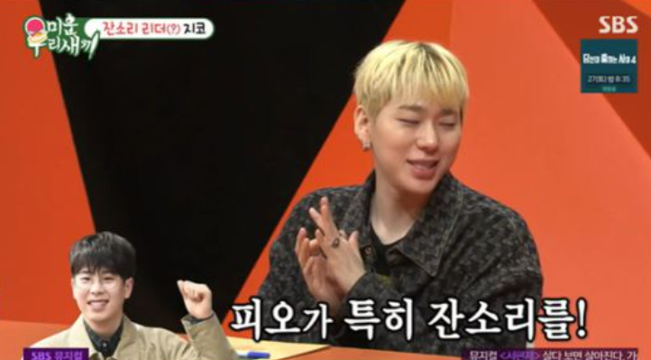이어 지코는 “다른 멤버들은 잔소리 안 했나?”라는 질문에 “회식 때 술을 안 마신다고 피오가 그렇게 잔소리를 했다”면서 “리더로서 분위기를 만드는 것도 책임 중 하나인데 빠지니까 애들이 엄청 싫어했다. 왜 그렇게 소극적이냐고 했다”고 밝혔다.