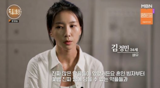 김정민은 "진짜 많은 악플들이 있었다. 혼인 빙자부터 꽃뱀, 진짜 입에 담을 수 없는 악플들이었다. 현재까지 이렇게 방송을 거의 중단한 상태로 지내고 있다"고 담담하게 말했다.