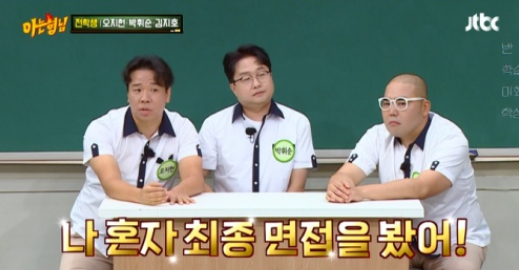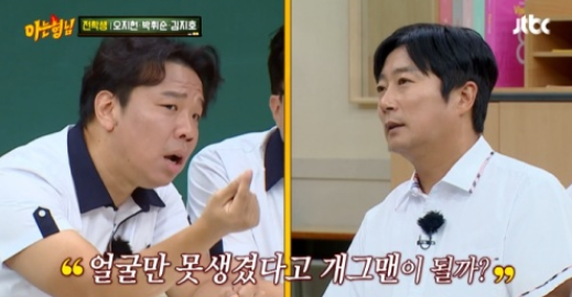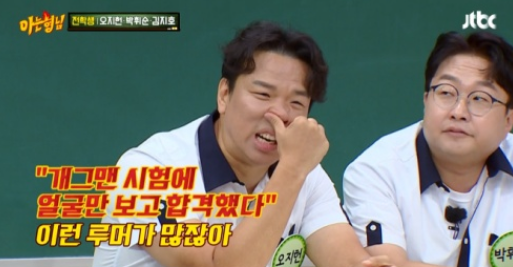 이어 오지헌은 "굉장히 할 말이 많다. 개그맨 시험에 얼굴만 보고 합격했다. 이런 루머가 많다"라고 억울함 토로했다. 오지헌은 "얼굴만 못생겼다고 개그맨이 될까?"라고 반문했다. 이에 이수근은 "난 그럴 수 있다고 봐"라고 답했다.