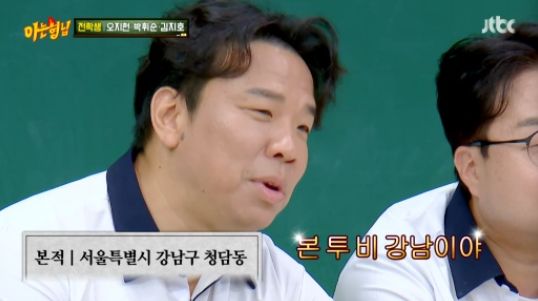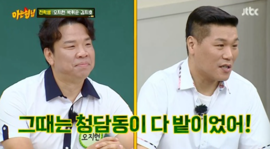 강호동은 "올해 내가 들은 얘기 중 가장 놀라운 이야기다"해 웃음을 자아냈다. 이에 서장훈은 "79년도에는 청담동 다 밭이었다"며 "아예 개발 전이었다"고 설명했다.