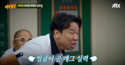 이진호는 "쟤는 '프리패스'다"라고 해 웃음을 줬고 박휘순은 "얘는 할 수 있는 것이 개그맨 밖에 없더라"고 해 웃음을 더했다.