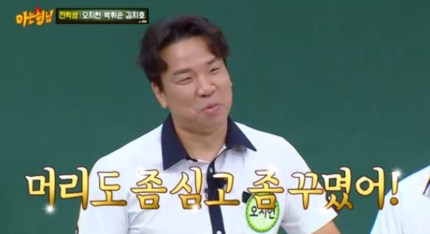 이수근은 “내가 올해 본 헤어스타일 중에 오지헌 헤어스타일이 제일 잘 안 어울리는 것 같다”라고 말하자 오지헌은 외모 근황에 대해 "나 머리도 좀 심고 꾸며서 그런지 20대 때보다 많이 잘생겨졌다"며 "20대보다 30대가 좀 잘생겼고, 40대가 되니까 잘생겨졌다"고 했다.