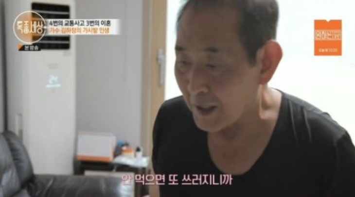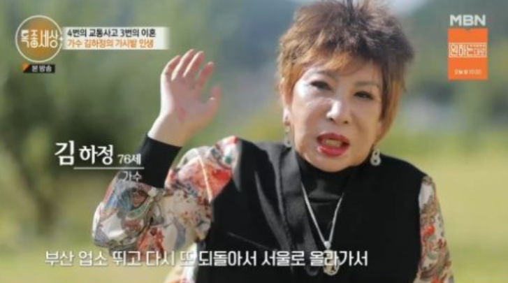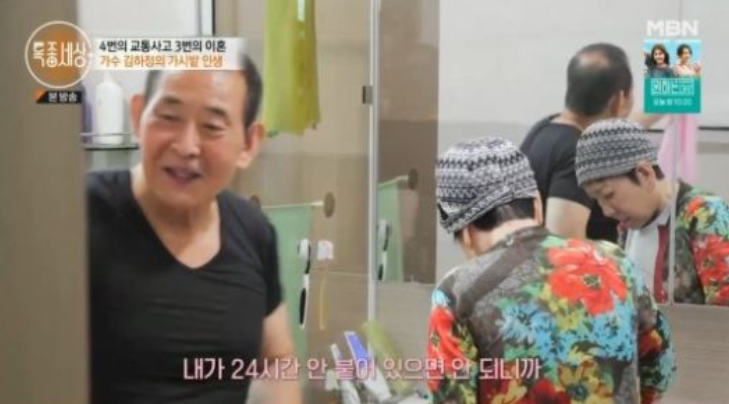 김하정은 "부산 업소 뛰도 되돌아서 서울로 올라가 다음날 전라도 행사 뛰다가 어느날 고꾸라 졌다"고 했고 이어 "그래서 병원으로 바로 실려갔다"고 회상했다.