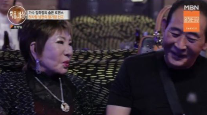 김하정은 3번의 이혼을 거쳐 30여년 만에 재회한 첫사랑과 여생을 보내고 있다고 고백했다. 또 현재 남편이 지병으로 생사의 갈림길에 있다고 털어놔 안타까움을 자아냈다. 남편은 "짧으면 1년, 그렇지 않으면 3년"이라며 방광암이 췌장까지 전이가 됐다고 전했다.