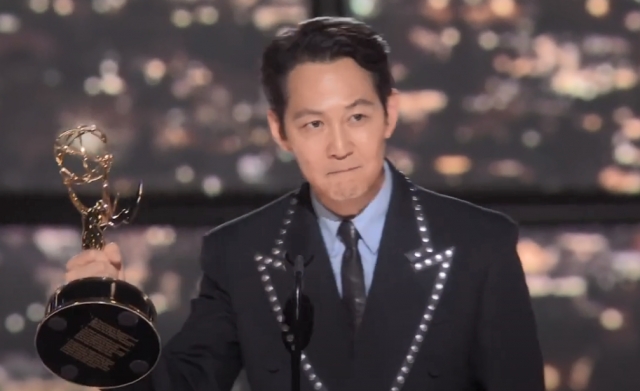 이정재는 무대에 올라 영어로 "에미 측과 넷플릭스, '오징어 게임' 팀에 감사하다"고 수상소감을 전했다. 이어 그는 한국어로 "대한민국에서 보고 있는 국민 여러분과 친구, 가족, 소중한 팬들과 이 기쁨을 나누겠다"고 말했다.