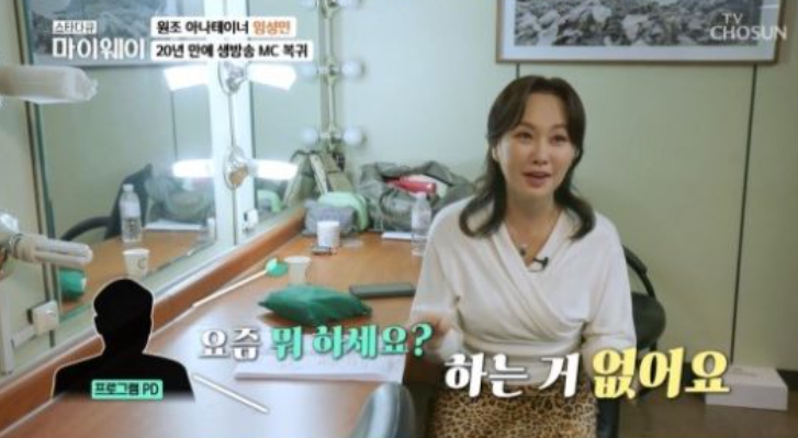임성민은 TV조선 ‘스타다큐 마이웨이’에서 “요즘 매일 생방송을 하고 있다. 거의 20년 만이다”라면서 생활고를 겪었던 이야기를 꺼냈다.