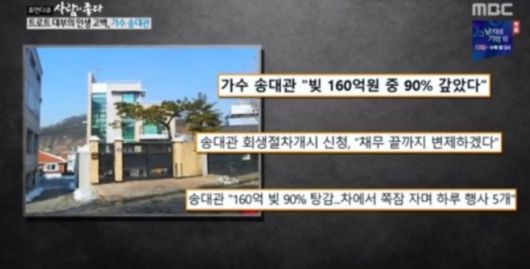 그럼에도 송대관은 다시 일어섰는데 지난 2013년 부동산 사기 사건에 휘말리면서 생긴 160억원 상당의 빚을 갚았다고 한다.