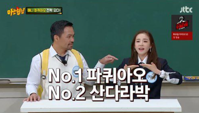 '아는 형님'에서는 살아있는 레전드 복서 매니 파퀴아오가 출연해 관심이 높아지고 있다.