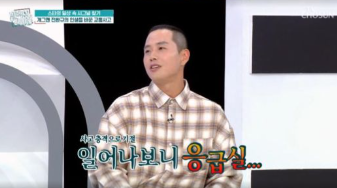 전환규는 "제가 사실 중학교 때부터 입시 운동을 했었다"며 "그러다가 체대 입시 실기시험을 보는 날 횡단보도에 (내가 탄) 차가 서 있었는데 뒤에서 트럭이 쾅 하고 부딪혔다"고 회상했다.