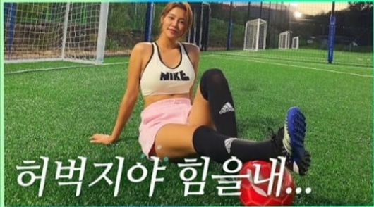 강소연은 자신의 인스타그램 스토리를 통해 한 장의 사진을 게재했는데 풋살장에 앉아 포즈를 취하고 있는 강소연의 모습이 담겼다.