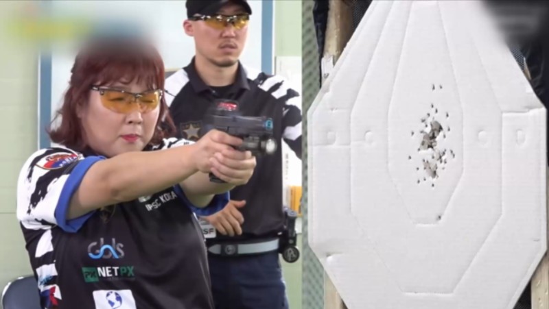 지난 9월 방송된 '운동뚱'에서 김민경은 엘리트도 25~50%만 합격한다는 자격증에 도전해 백발백중 사격 실력을 보여줬다.
