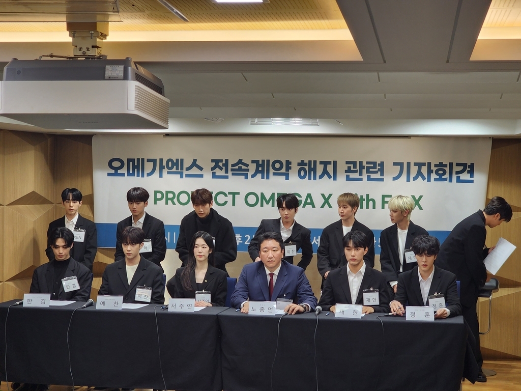 오메가엑스는 16일 오후 서울 서초구 변호사회관에서 전속계약 해지 관련 기자회견을 열었다. 이 자리에는 멤버 전원과 법률대리인 법무법인 에스 노종언, 서주연 변호사가 참석했다.