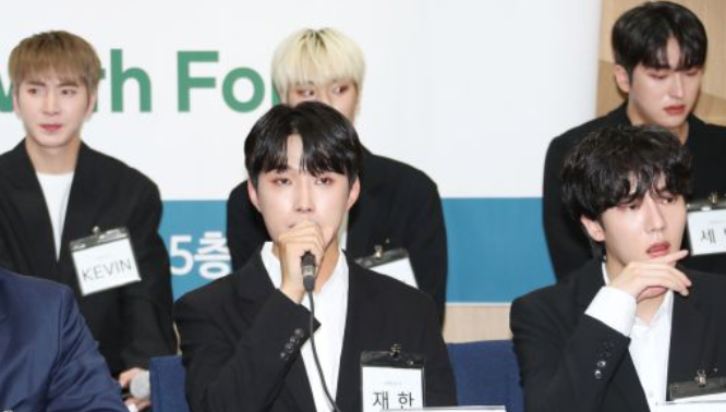 기자회견을 통해 처음으로 입을 연 멤버 재한은 "지금껏 참고 버틸 수밖에 없었던 이유는 참지 않으면 마지막 기회가 사라질 것이라는 두려움 때문이었다"라며 "두번째로 도전하는 기회였고 이런 일로 기간을 날리고 싶지 않았고, 믿어준 팬분들을 위해 참아야 한다고 생각했다"고 말문을 열었다.