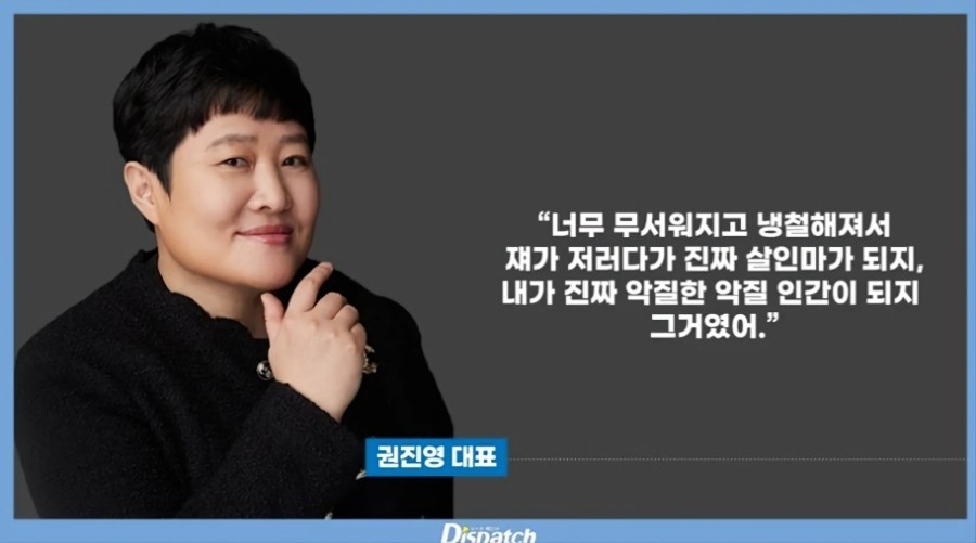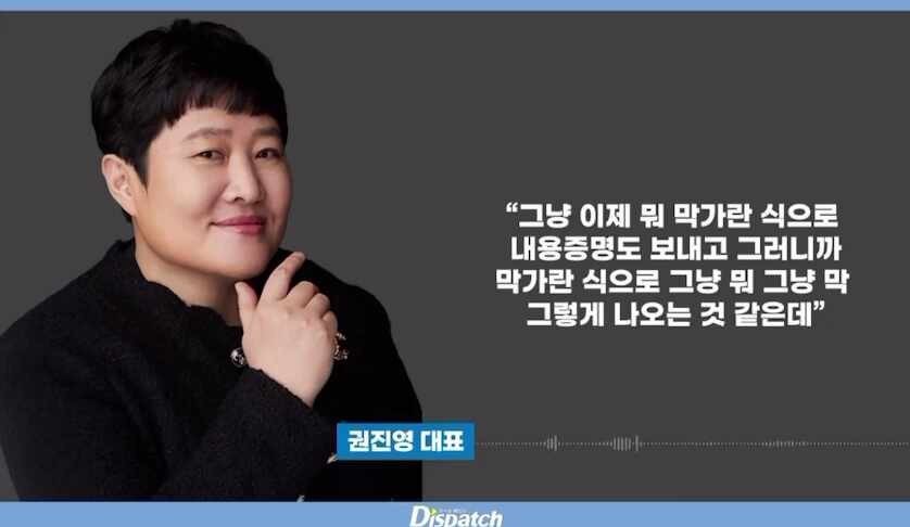 이후 다시 디스패치가 “내 이름을 걸고 죽여버릴 거야. 내 남은 인생을 그 XX를 죽이는 데 쓸 거야”라는 등 권 대표의 발언이 담긴 녹취를 공개하며 논란이 가중되고 있다.