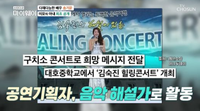 공연기획자, 음악 해설가로 활동한 김숙진은 "송기윤의 아내 되는 사람이다. 이렇게 찾아뵙게 돼서 정말 반갑다."라고 말했다.