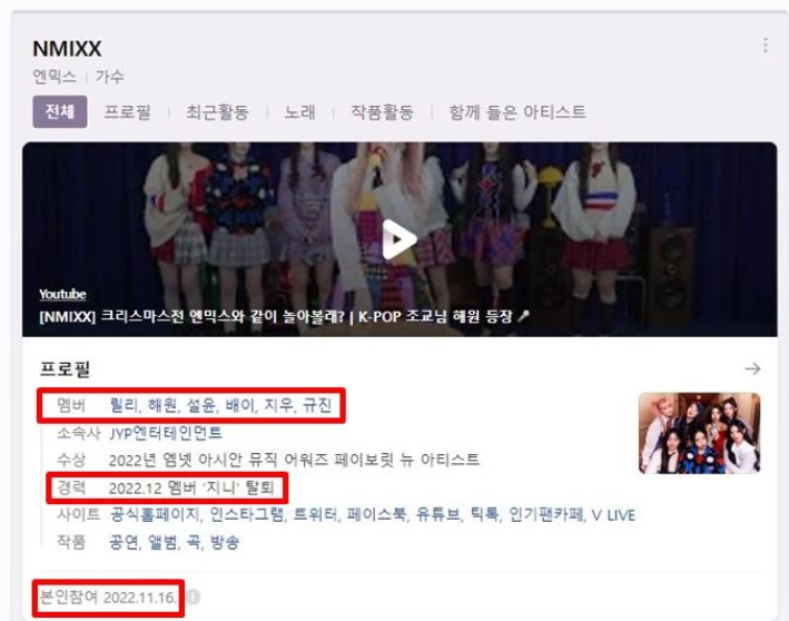 2022년 2월 엔믹스 1집으로 데뷔하였고 현재 소속사는 없다.