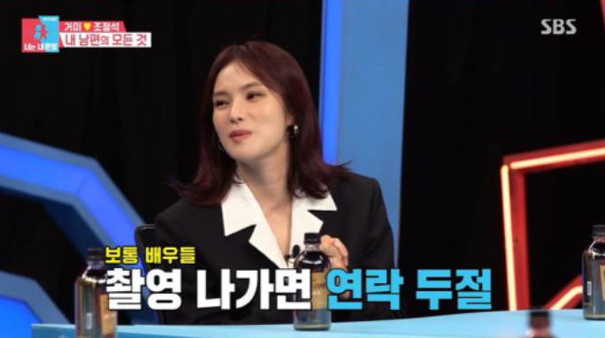 김숙은 "조정석이 1시간에 1번씩 전화할 정도로 사랑꾼이라고 들었다. 핸드폰이 꺼질 날이 없다던데 맞냐"고 했다. 이에 거미는 "전화를 자주 해주는 편이다. 선배들 말로는 (배우들이) 작품 들어가면 연락이 많이 안 된다던데 조정석은 촬영 들어갈 때나, 일거수일투족 연락해준다"고 전했다.